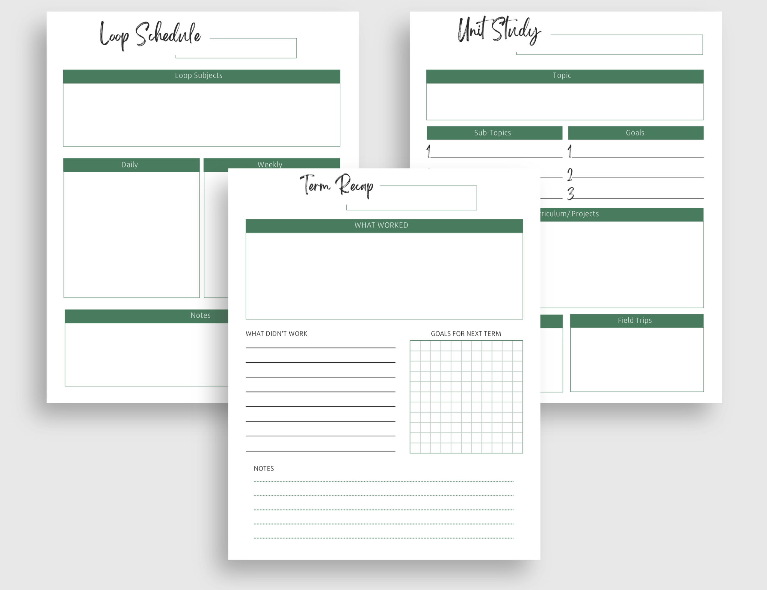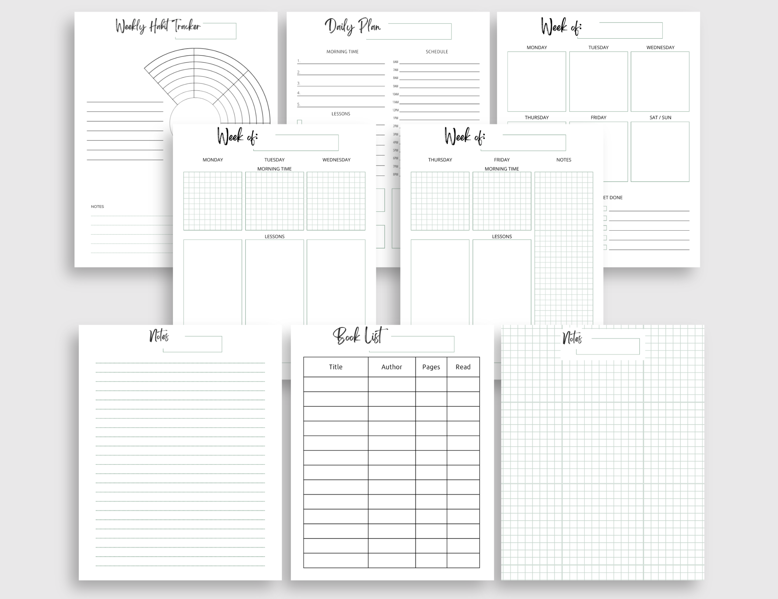 This planner is perfect for homeschool moms who prefer open-ended structure over rigid scheduling — allowing flexibility while maintaining order. Available in three calming colors to match your binder or aesthetic.