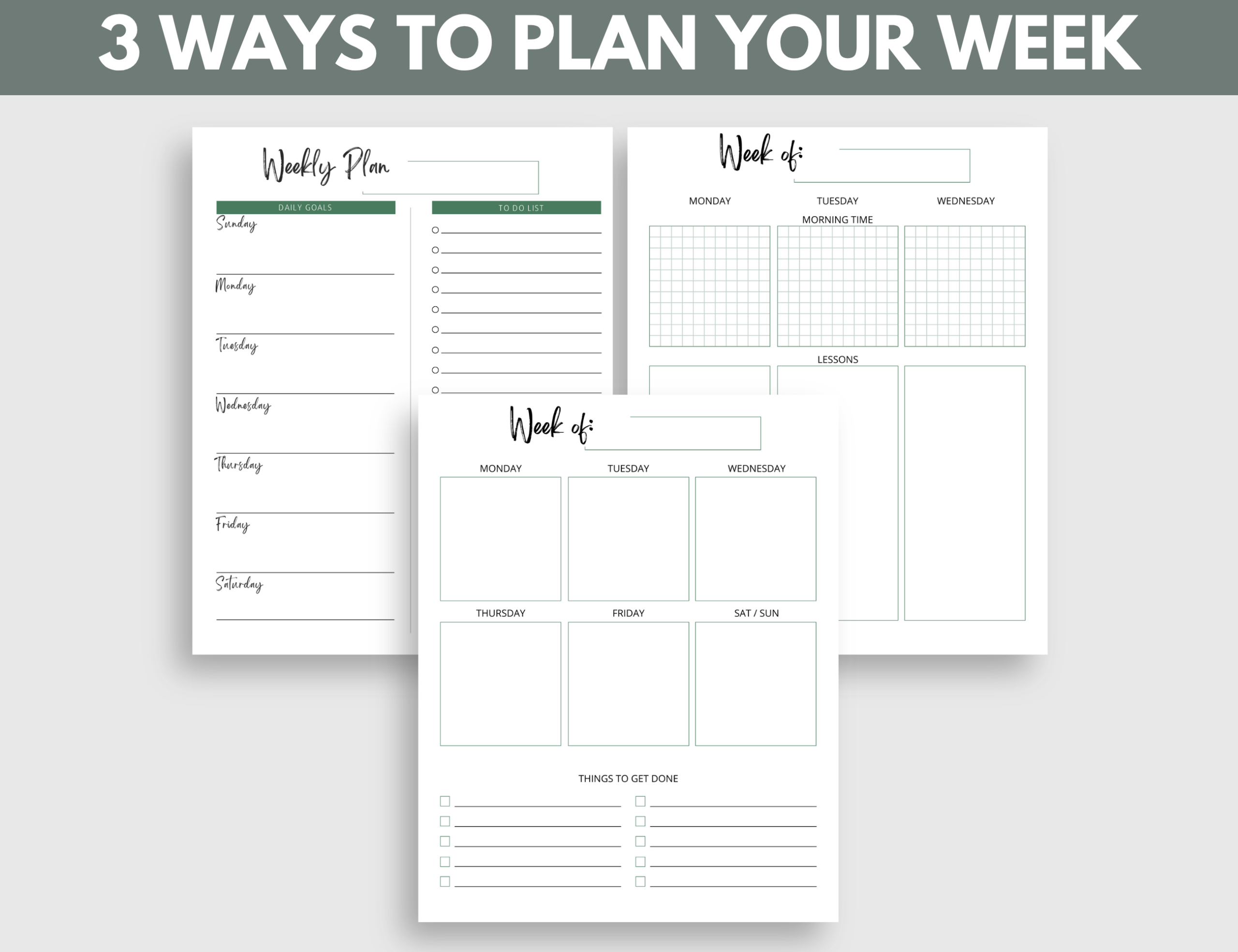 3 Versions of Weekly Planners: Choose layouts that work best for your weekly flow.